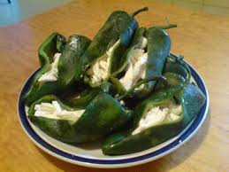 Chiles rellenos de queso oaxaca 8 chiles poblanos. 4 huevos, separadas las yemas de las claras. Sal y pimienta. Aceite suficiente para freír. 1 taza de harina de trigo. 1/2 kg. de queso oaxaca. Para el caldillo: 3 tazas de salsa base roja. 2 tazas de agua hervida. 1 cdita. de consomé en polvo, para sazonar. Sal. Preparación: Asar los chiles poblanos para quitar la piel delgadita, desvenarlos y retirarles las semillas. Abrir por un lado. Rellenar con queso de oaxaca y cerrar con palillo. Pasar los chiles por harina por todos lados, reservar. Batir las claras de huevo a punto de turrón y cuando estén firmes, añadir la sal y pimienta, en el último momento, ya que se tienen listos los chiles, añadir las yemas y revolver suavemente para que no se "bajen" las claras. Cubrir los chiles con el huevo, de uno por uno, e inmediatamente, freír en suficiente aceite por ambos lados, cuidando de que no queden partes del huevo crudo, retirar y colocar sobre papel absorbente para eliminar el exceso de grasa. Colocar los chiles dentro del caldillo por lo menos 15 min. Antes de comer. Pero no más de una hora, por qué absorben mucho caldillo. Para hacer el caldillo: Colocar en una cacerola, todos los ingredientes y llevar a hervor, rectificas la sal y colocar los chiles apagando inmediatamente después. Fuente: Cocina Mexicana para principiantes Autor: Mercedes Dubois Santoveña